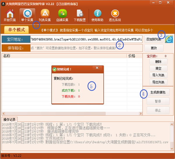 1、首先,要确定的是,复制阿里的宝贝生成淘宝的数据包还是阿里的数据包,因为淘宝和阿里的数据包结构是不一样的。所以,采集生成数据包的时候,下载配置也是不同的。