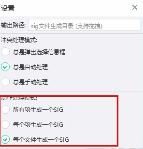 9、制作处理模式,可将所有项生成一个SIG、每个项生成一个SIG等。