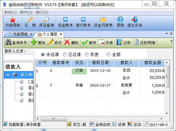 2、自动生成个人借款明细账,同类出纳软件无此功能。