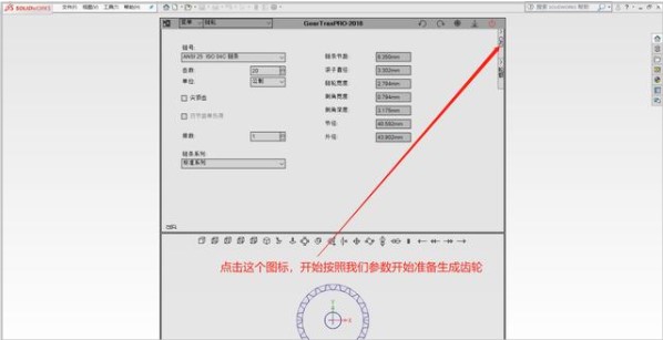 2、如图,对各种参数进行设置后,点击红色箭头处按钮,即可在Solidworks中自动生成模型。
