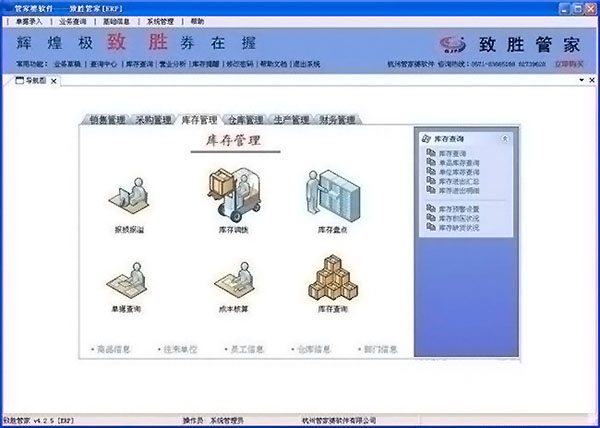 致胜管家高级进销存正式版是一款专为厂家和经销商开发的集产品的进、销、存操作为一体的统计管理软件。以企业进销存软件为基础,已销售管理为切入点,从管理者的角度出发,重点突出库存、销售和统计查询功能,经过多年的实践,形成一套完善的管理软件。并可根据客户要求对软件功能进行增减,也可根据客户的不同需求进行二次开发或定向开发。使用致胜管家高级进销存能够帮助厂家或经销商完成日常的进销存管理,方便用户查看及维护仓库和日常业务。有需要的朋友可以欢迎下载体验。