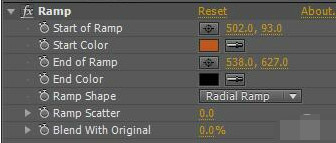 2、选择创建项目合成按钮,任名为“飞舞数据流”,再新建一个黑色的固态层,添加渐变特效(Effect—Generate—Ramp)。具体参数参考:Strat Color为#BE5622,End Color为#020202。