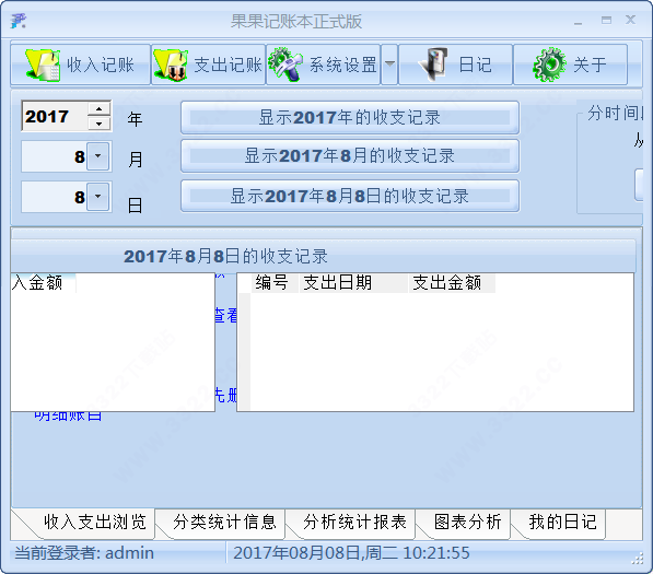 点击收入支出浏览,可以看到整个月的收支情况;