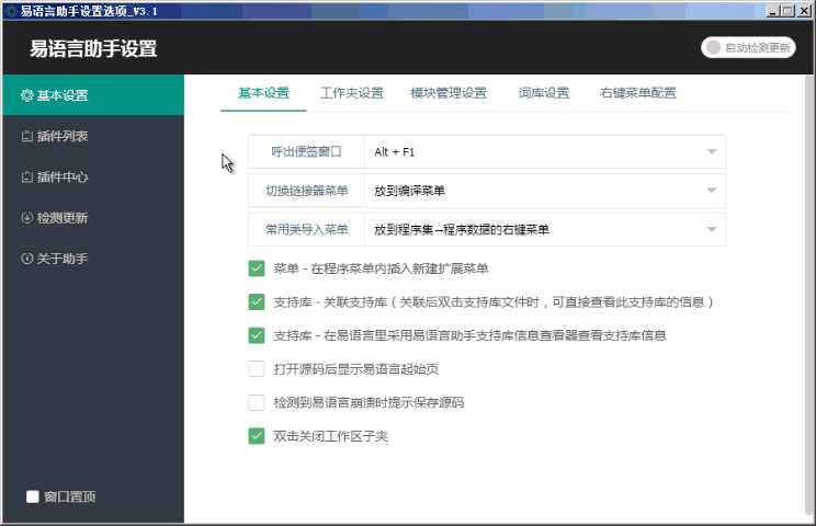 支持双击快速引用常用模块、自动加载模块、自动添加分类等功能。方便您随时加载模块到易语言,而不用总是找,浪费不必要的时间。