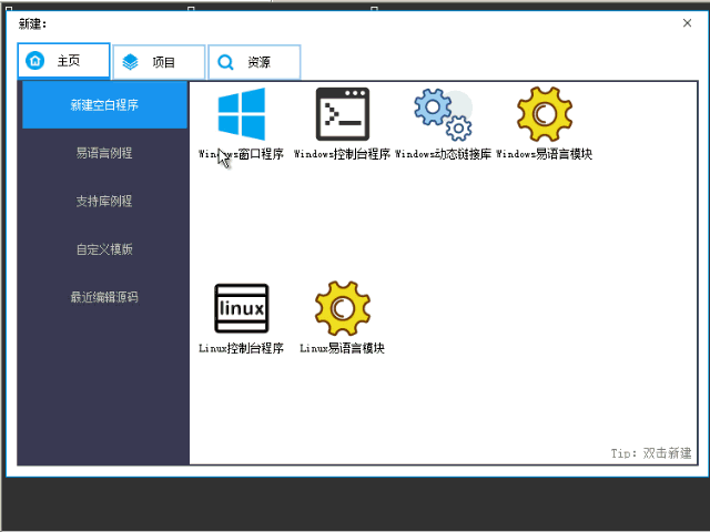 扩展易语言新建窗口,支持更多的操作,如记录最近打开编辑源码记录无上限,项目管理,资源搜索等