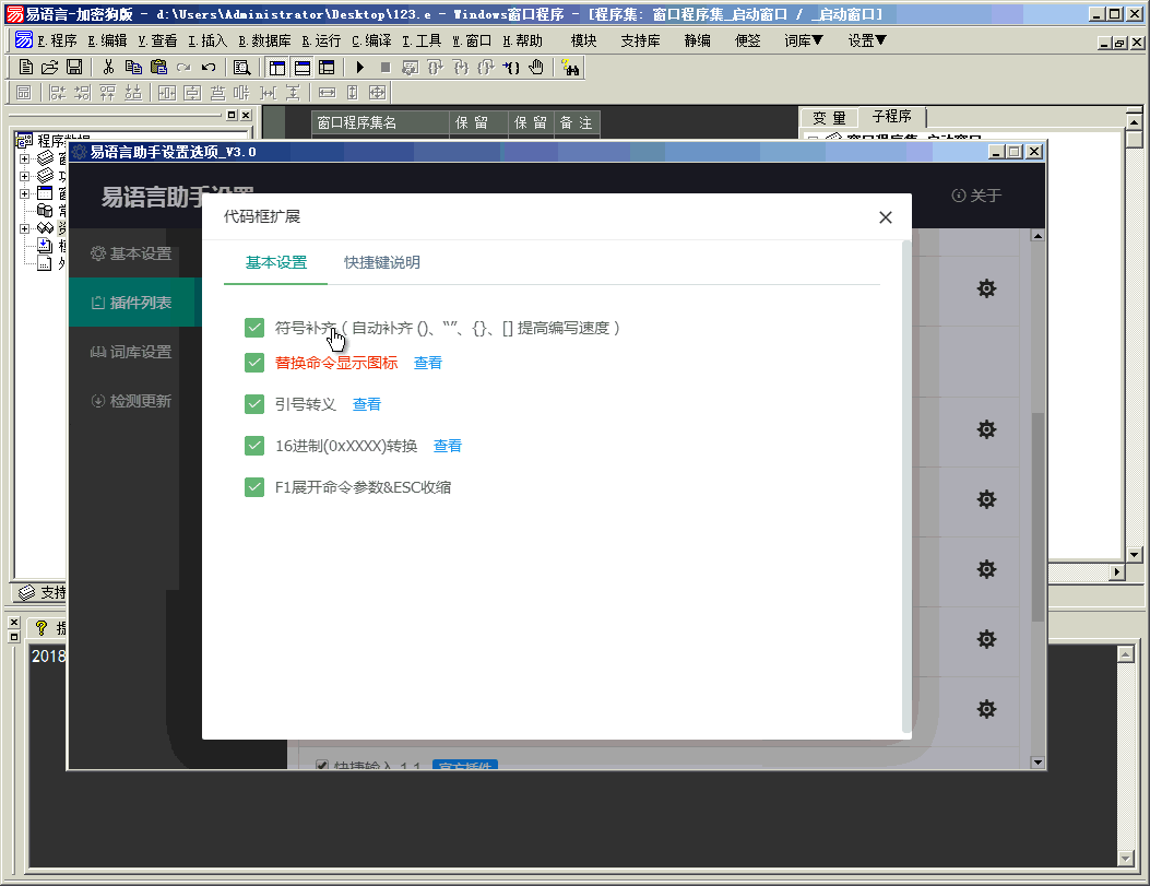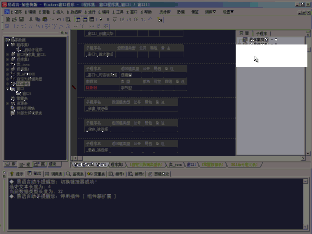 强大的词库管理功能,可以在易语言直接调用词库中的API、常量、数据类型,也可以在易语言里输入完整的API函数,再回车也会自动插入到易语言里,并支持在线同步更新。