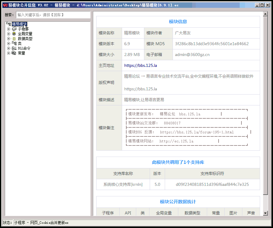 1、模块查看查看模块详细命令信息,支持快速查找、表格式预览命令,可快速插入代码到易语言,自带缓存机制,更快打开!声音、图片资源同样支持!