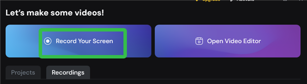 1、打开软件,点击【Record Your Screen】开启录制器。