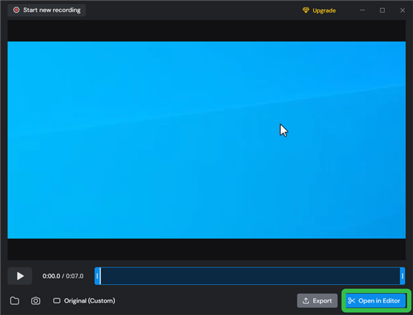 6、录制完,用户可以点击【open in Editor】进行视频剪辑。