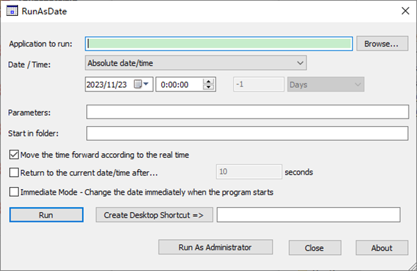 RunAsDate拥有直观简单的用户界面,操作非常方便。用户只需几步简单设置,即可轻松完成所需的任务,无需繁琐的步骤。