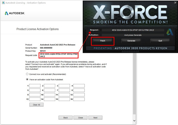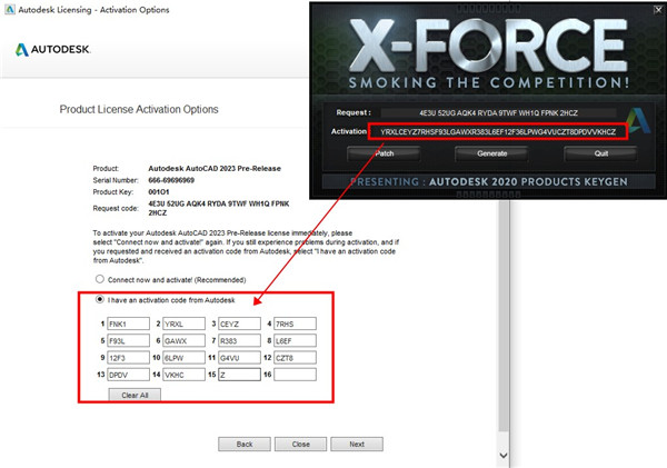 14、返回注册界面,重新打开cad2023软件,继续以上操作,重新进入注册界面,选择“i have an activation cdoe...”显示如下: