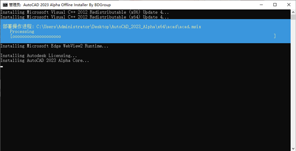 4、静静等待一会,如果命名提示符里没有出现红色字体,则代表已经安装成功了;