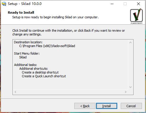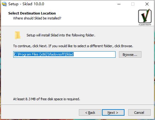 安装向导默认设置的软件默认安装路径为C:\Program Files (x86)\Vladovsoft\Sklad