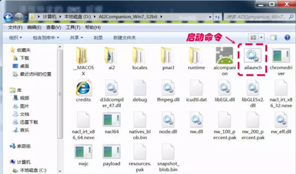 解压缩后的桌面版AI伴侣包含28个文件(文件夹),如图6所示,其中启动命令为ailaunch.bat,执行该命令,将启动桌面版AI伴侣。