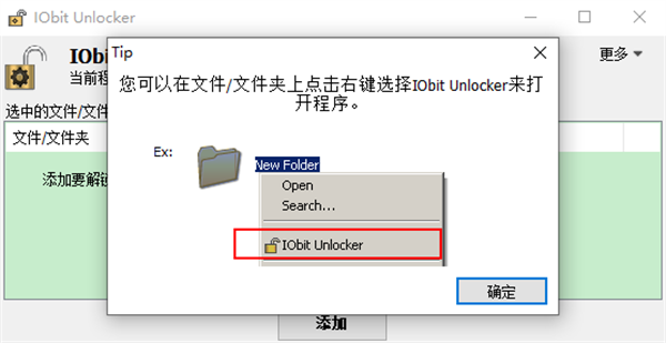 1、您可以通过右键单击文件/文件夹,然后选择IObit Unlocker来启动程序,或者只需双击IObit Unlocker快捷方式,然后添加文件/文件夹即可。