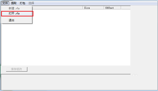 1、进去winrfa软件,可以看到主要有是三个功能打开rfa文件,提取mod文件夹和打包文件,如下图所示: