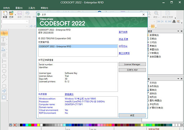 10、您要在试用模式下启动 CODESOFT,有效期为 30 天。