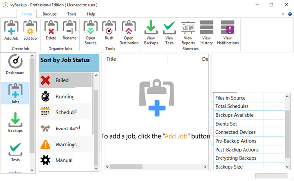 使用IvyBackup易于使用的界面来保持组织和管理备份作业,备份和测试。