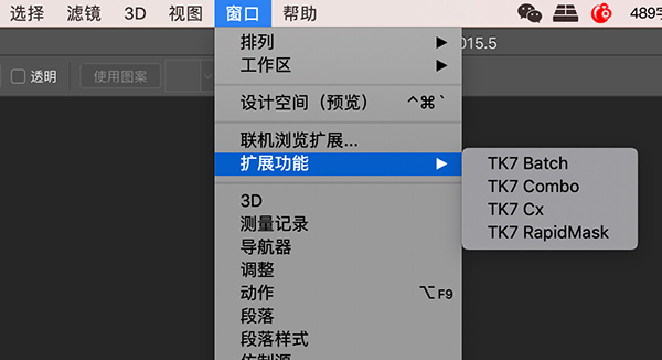 一、tkactions模块介绍插件一键安装完成后,在ps上方栏的窗口—扩展功能处可以调出tkactions的所有模块,并将选中的模块附着添加到ps的操作面板