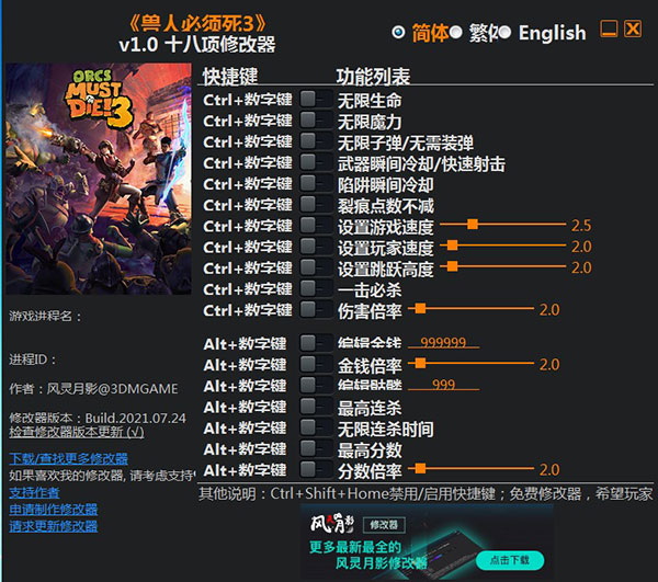 兽人必须死3十八项修改器键位说明