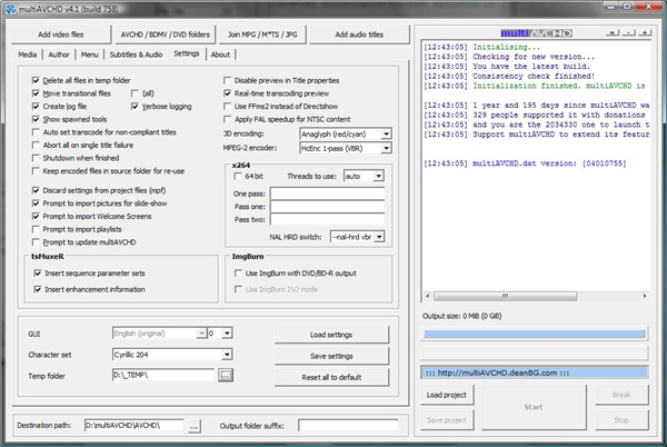 - Destination Path和Temp Folder最好设在目标USB盘上,比如设成e:\AVCHD 和e:\temp\,可以节省磁盘操作时间