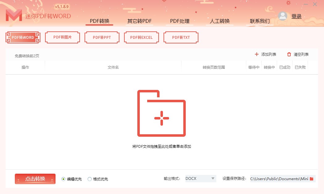 v5.1.8.9版本1.新增PDF转word专业/普通模式