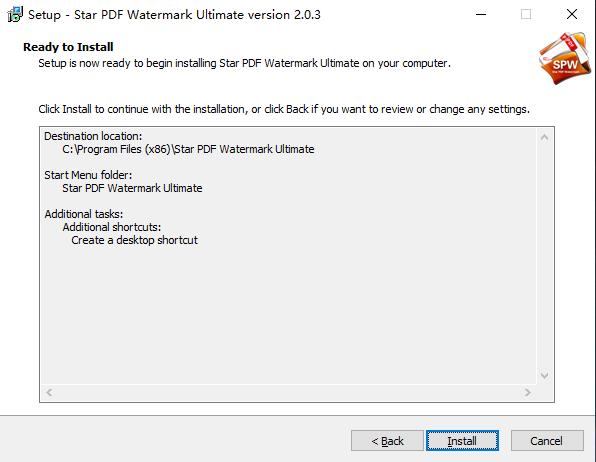 安装向导默认设置的软件默认安装路径为C:\Program Files (x86)\Star PDF Watermark Ultimate