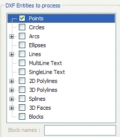 只需在列表中选择必须处理的DXF实体。