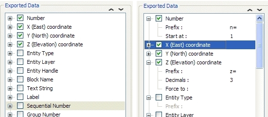 3、这也是您需要导航以精确指定要导出的数据的地方。行号,X,Y和Z坐标,实体类型,图层和句柄,文本字符串,标签和顺序号只是其中的一部分,并且提到您可以轻松更改列表中任何项目的优先级。