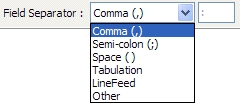 导出的数据可以用一个可选的前缀作为前缀,并且必须用您在 "字段分隔符 "框中选择的字段分隔符来分隔。在选择 "其他 "上选择一个预定义的分隔符,并输入字符作为分隔符使用。