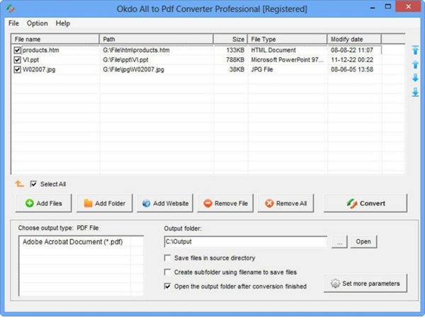 8、支持将PowerPoint,TIFF,GIF文件的所有页面转换为一个多页PDF