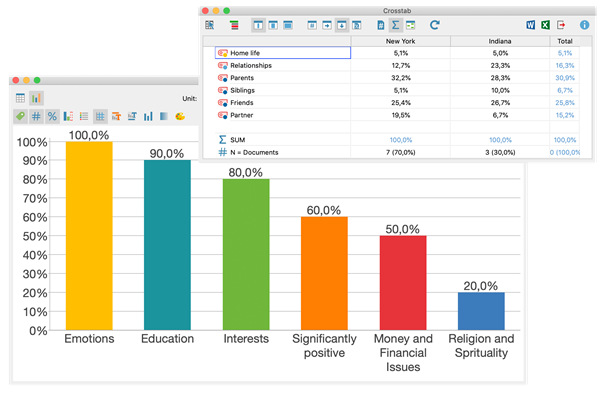 MAXQDA不会锁定您的数据。可以导出您的项目部分,单个文档,搜索结果或整个项目到多种文件格式,比如Excel, Word,图像或XML。