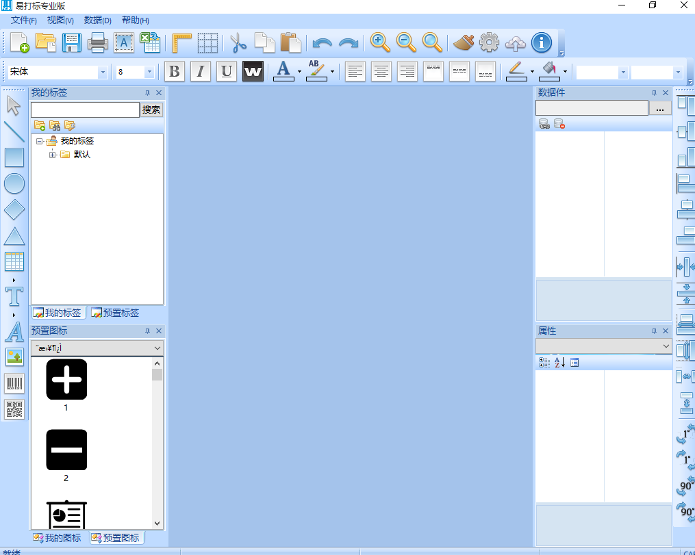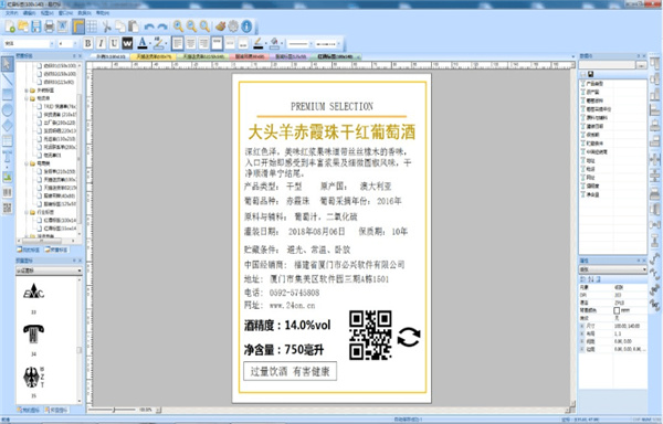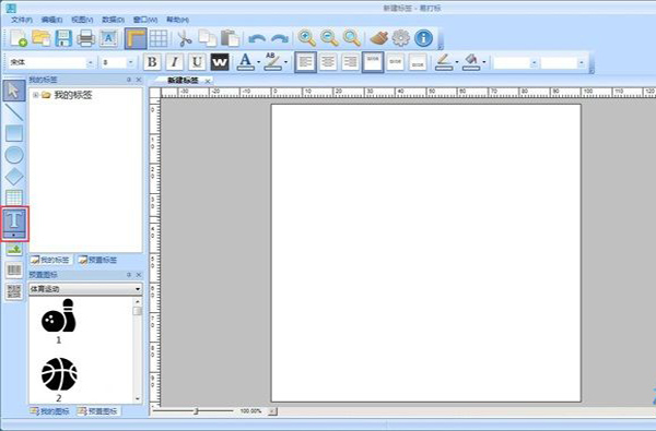 现在我们就可以开始编辑标签的内容了。点击软件主界面左边编辑功能中的文本按钮,就可以打开文本编辑功能,然后用鼠标点击软件主界面的编辑区域,就可以添加文本内容;