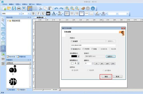 文本编辑完成之后,就可以点击文本内容编辑窗口底部的确定,将文本添加到标签中;