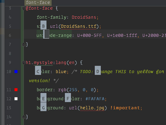 用于光标的快速定位与跳转,默认的快捷键是ctrl + ;,按快捷键之后,再按下自己想要将光标跳转到的目标的字母,这时会出现很多A,B,C,D,E… 的序号,按下相应的字母即可跳转到相应的地方。(区分大小写)