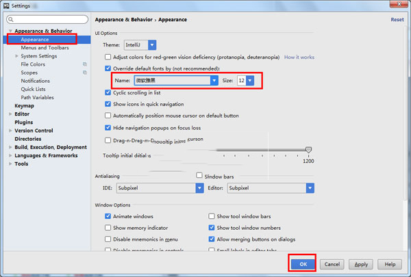 1、文件下载并解压后,运行主程序中bin文件夹的“WebStorm.exe”,然后在菜单上依次选择File -> Settings -> Appearance&Behavior -> Appearance -> 选中Override default fonts by(not recommended)