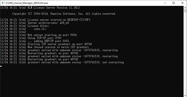 5、将 VM_License_Manager_2023 复制到 C:\ 并运行 rlm.exe