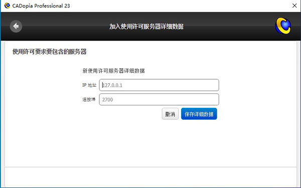 6、运行 Cadopia Professional 23 x64 单击“激活”并选择网络添加 127.0.0.1 或主机端口 2700
