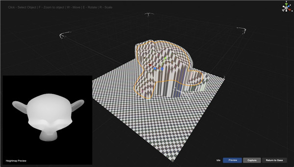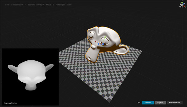 您可以在右下角看到捕获预览。使用预览切换可在视口中查看高度场近似值。