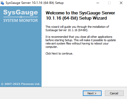 安装向导默认设置的软件默认安装路径为C:\Program Files\SysGauge Server