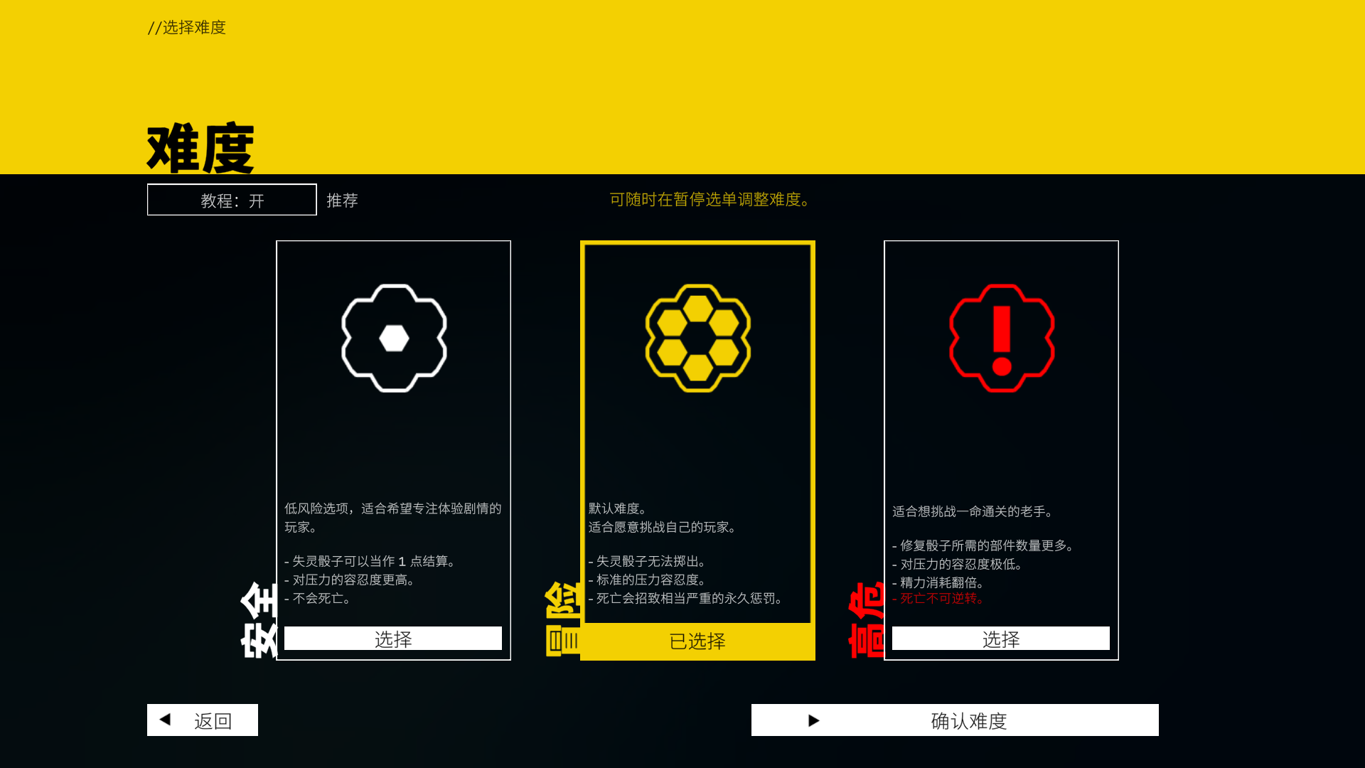 1、开局选择游玩难度,建议先手选择安全或者冒险难度。