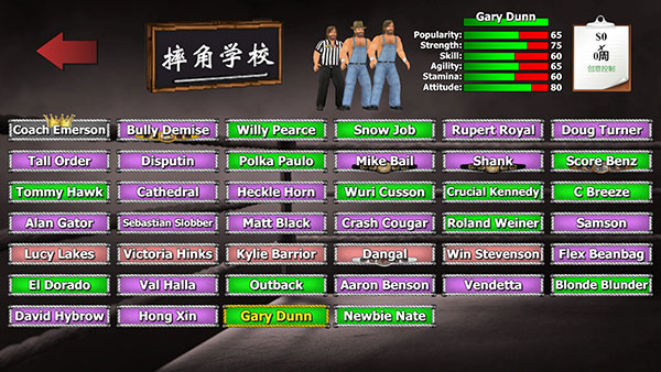 5、进入之后,在众多摔跤人物角色中挑一个你喜欢的进行比赛;