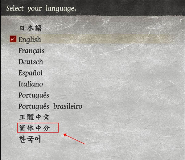 3、进入游戏后,由于游戏默认的语言为English,所以我们需要设置为简体中文语言;