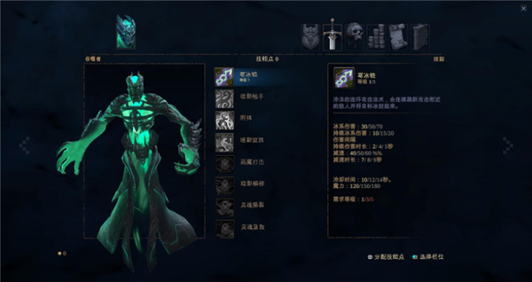 技能:冰霜锁链(向一个敌人发射一条冰霜锁链,命中后会伸向附近的其他敌人,现实中的生物也能在暗影形态下锁住)