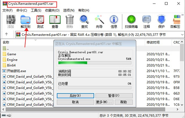 2、打开游戏目录Bin64路径,运行CrysisRemastered.exe开始游戏;