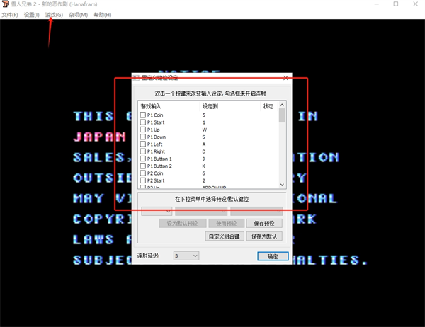 5、点击键盘【5、6】投币,键盘【2】开始游戏,接下来就需要您来操作通关啦。