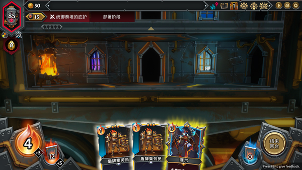 3、玩家可使用游戏中的卡牌来放置士兵战斗;
