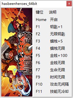 过气英雄修改器是专为该游戏打造的一款游戏辅助修改工具。功能强大,便捷实用,能够让玩家一键实现开启无限钥匙、金钱+1000、攻击无间隔、蜡烛无限等十项功能,大大降低了游戏难易程度,从而让玩家拥有更加舒适的游戏体验,需要的玩家欢迎下载体验。