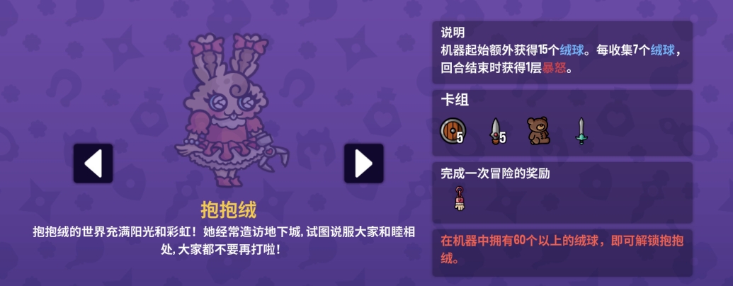 解锁条件:在机器中拥有60个以上的绒球,即可解锁抱抱>绒。