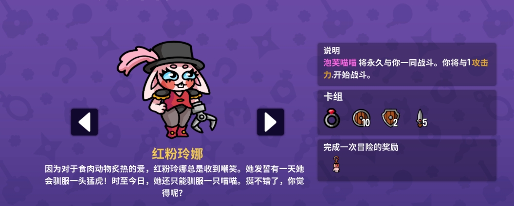 能力:会召唤一只泡芙喵喵来协助我们战斗,但宠物的攻击力修改只能用在第一个宠物上,而不是红粉玲娜。